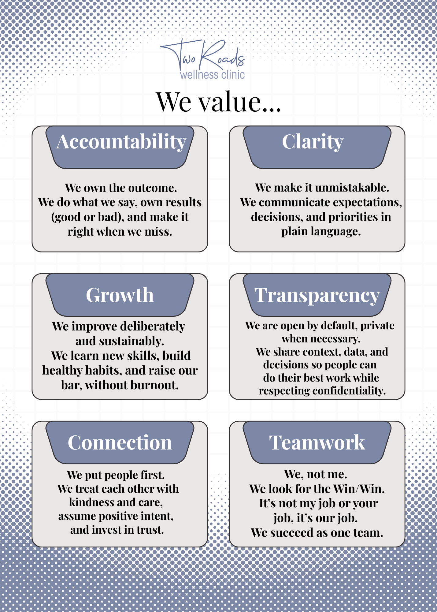 • Our mission at Two Roads Wellness Clinic® is to support and empower all people to reach their best selves through emotional, physical, and spiritual wellness.
